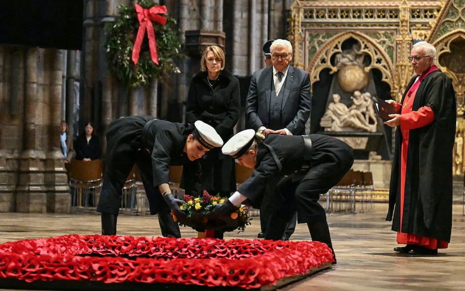 12月4日,正在英国进行国事访问的德国总统施泰因迈尔在向英国议会两院议员发表演讲时表示,“英国和德国是亲密盟友。鉴于德国在两次世界大战中给欧洲带来‘难以言表’的苦难,它并不想要一份礼物——人民。二战结束后,德国的一切生活状况都在不断反映着他们的战争罪行。其中最具代表性的一幕发生在1970年12月7日,德意志联邦共和国总理勃兰特下跪向华沙犹太遇难者敬献花圈,这一下跪被认为是德国彻底反思战争罪行的代表姿态,促进了德国与波兰等国的战后和解。